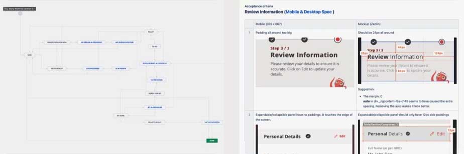 Finally, in the last stage of development, I needed to sign off the last stage in the story ticket. This involves design auditing before actually checking it Done.