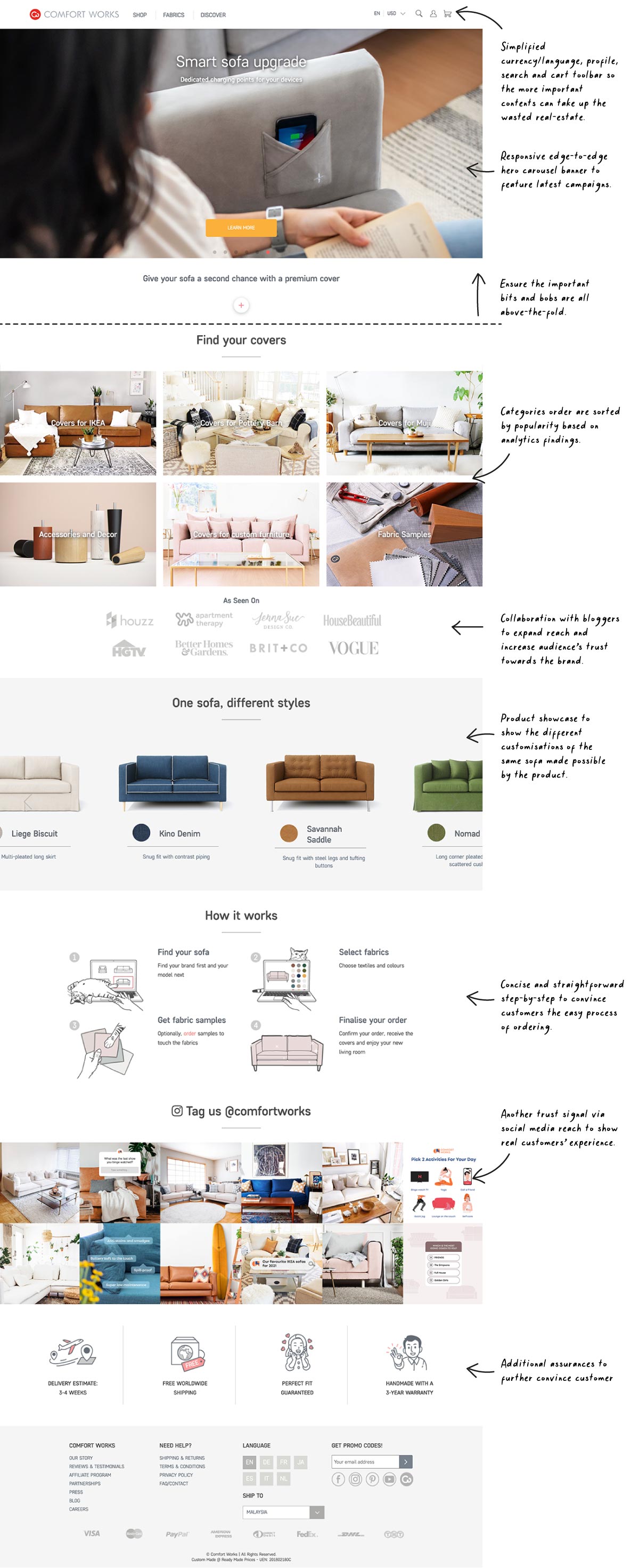 My favourite project was to revamp the product page with challenges to include a few product customizations. The customizations involves combination of 60+ choice of fabric, 5+ styles and smart accessories. On day-to-day basis, I look after and assist landing pages created by in-house authors.